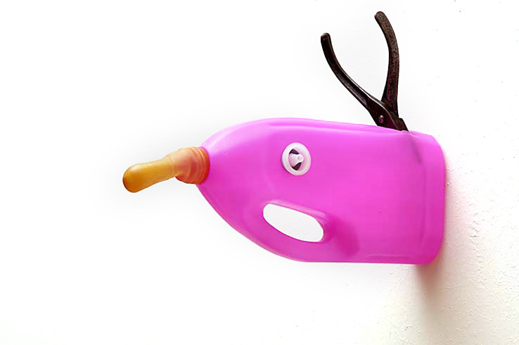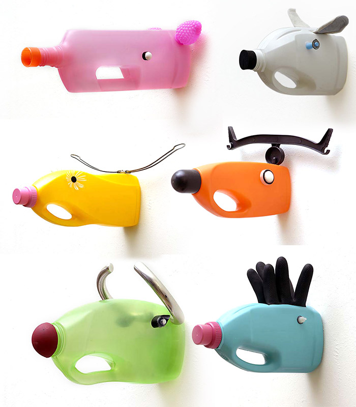 O modo como a artista compõe suas esculturas pode servir de inspiração para quem deseja descobrir como fazer animais com sucata – e de maneira bastante fácil. Com poucos itens dispostos sobre vasilhames comuns de produtos de limpeza, ela cria olhos, orelhas e chifres. Brincar com cores e formas é o segredo aqui. Inspire-se nos bichos de material reciclado abaixo e use a criatividade para inventar os seus próprios.