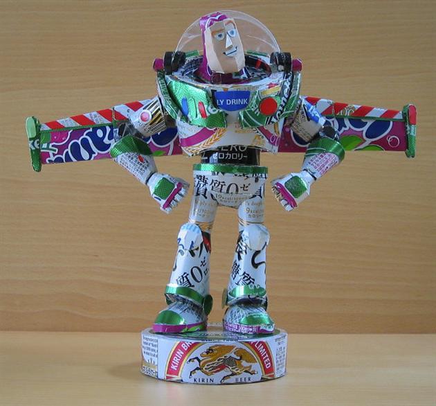 Situado no Japão, o artista Macaon cria belas esculturas a partir de latinhas de alumínio. Nesta coleção são reproduzidos ícones da cultura pop como Batman, Pokémons, personagens do Mario, Woody e Buzz Lightyear do Toy Story, Darth Vader, Hello Kitty e o robô Unicorn Gundam.