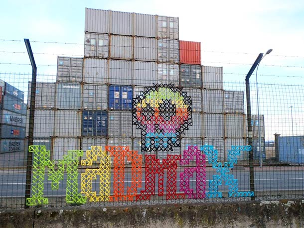 O ponto cruz é famoso em praticamente todo mundo. Daí que na França, o artista Urban X Stitch teve contato com a parada, mas resolveu bordar outra coisa em vez de panos: as grades da cidade de Lyon.