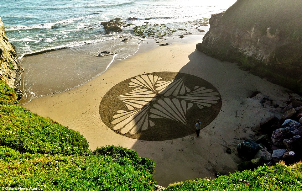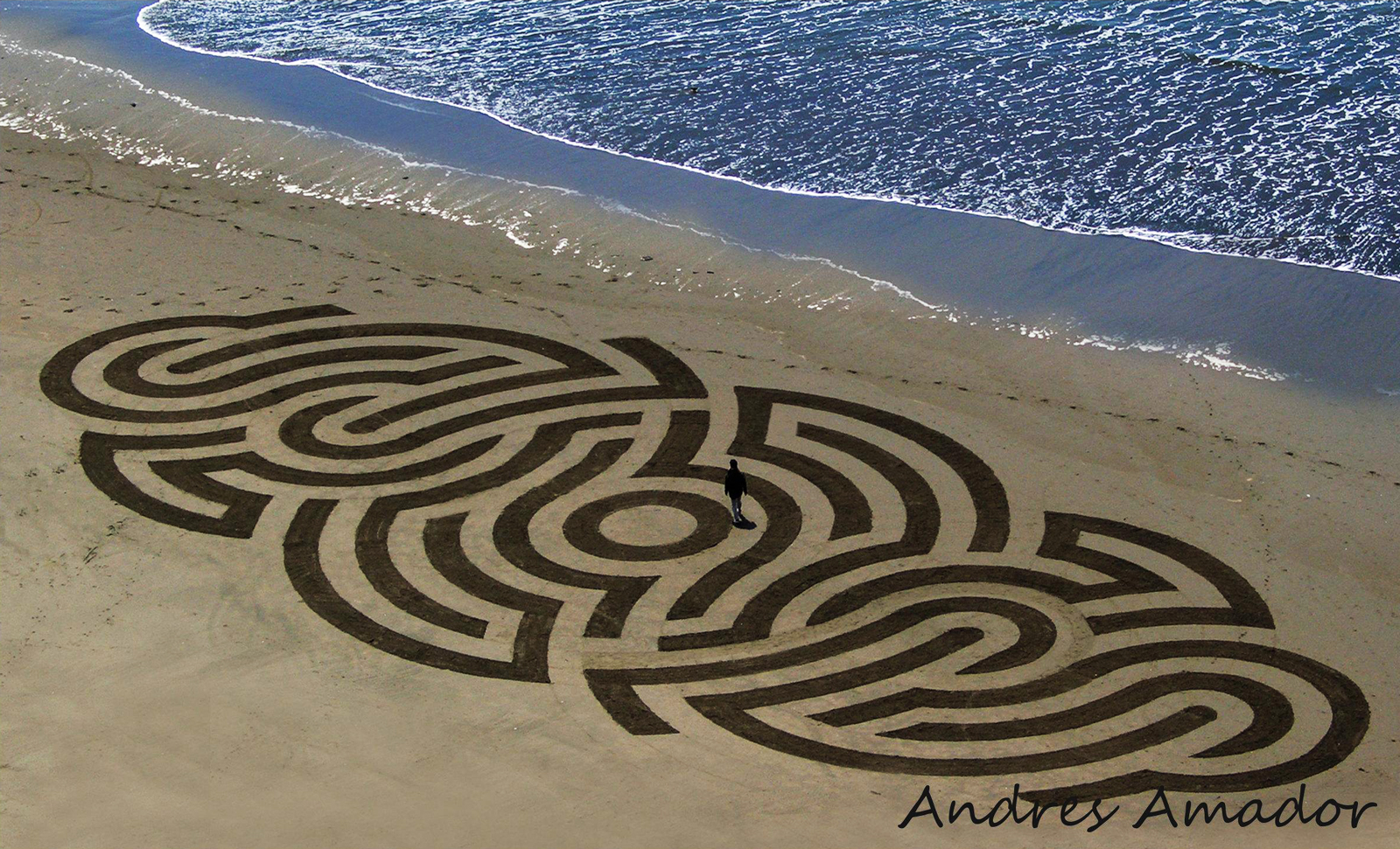 O artista Andres Amador leva a arte não convencional para um outro nível com os seus incríveis desenhos de areia. Usando a praia como sua enorme tela e o rastelo como pincel, Andres cria enormes desenhos com padrões geométricos e padrões perfeitos.