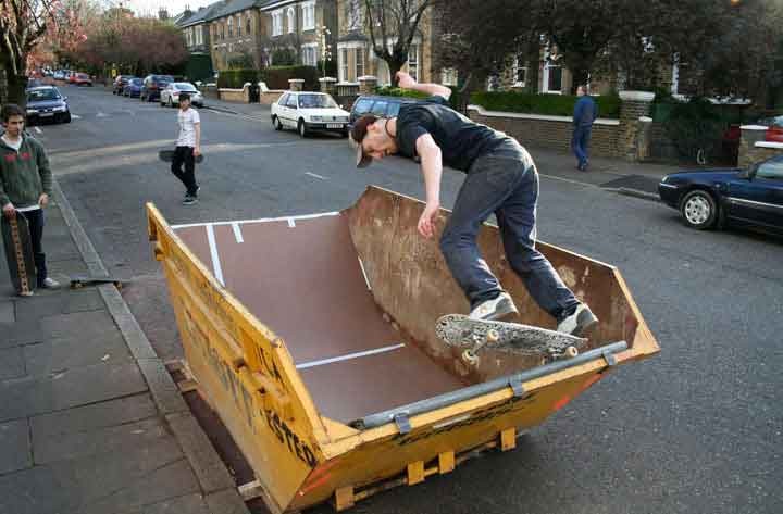 Elas estão pelas ruas do mundo – usualmente repletas de entulho e lixo. Provavelmente você já não percebe quando as vê, de tão habituais que se tornaram na paisagem urbana. No entanto, creio que você repararia numa caçamba caso visse alguém andando de skate dentro dela.