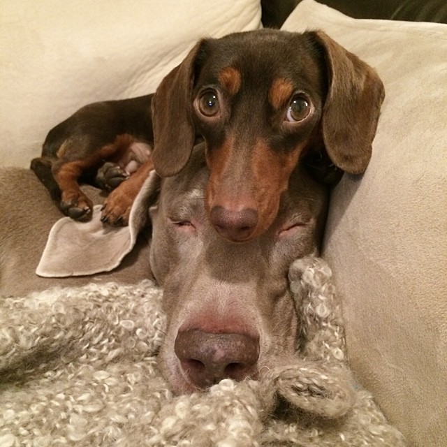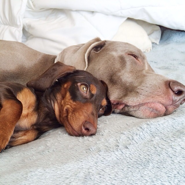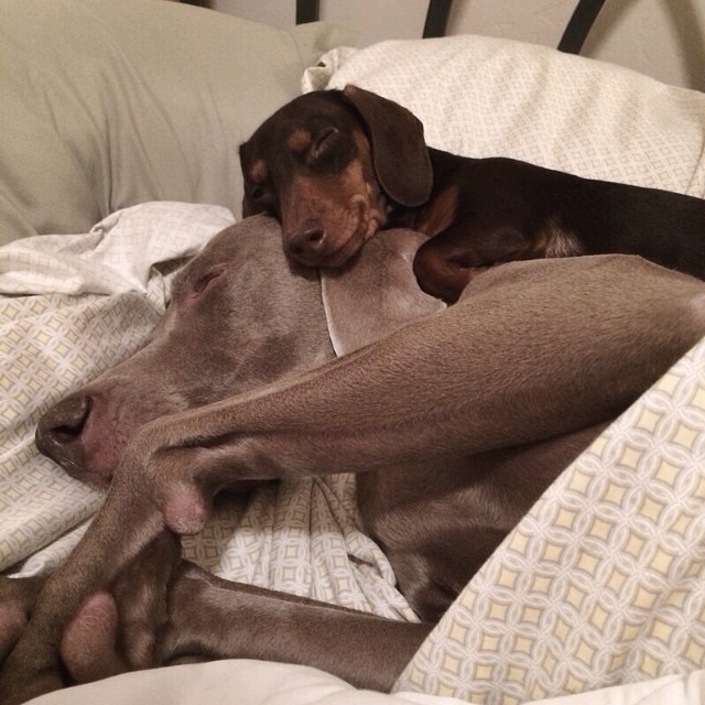 As fotos dos dois dormindo tranquilamente, lado a lado, ou as vezes um por cima do outro, sem a menor preocupação de ter seu companheiro ali juntinho, mostram que realmente os dois cães tem uma ligação acima do normal.