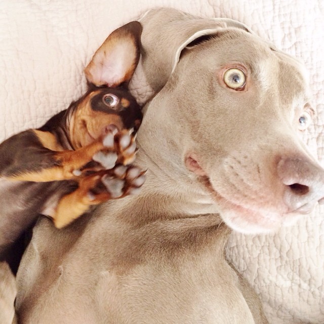 Vejam algumas fotos que separamos para vocês desta linda união de raças fotogênicas, que poderíamos tentar descrever como uma amizade canina: