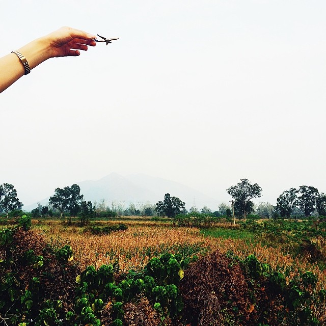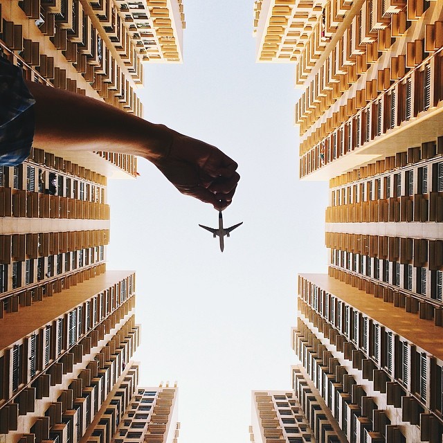 Nas fotos indicadas pela tag #mytoyplane, ele manipula a perspectiva para fazer com que sua miniatura se encaixe no cenário como se fosse um avião real. À primeira olhada, eu achei que a jogada fosse posicionar a mão na direção de uma aeronave, fingindo segurá-la! Não, trata-se mesmo de um brinquedo.