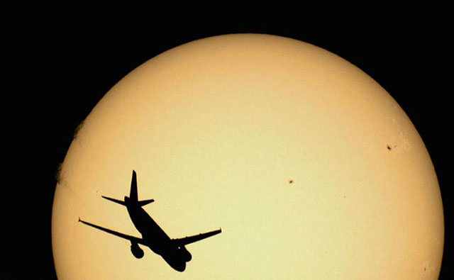 Minha preferida é a do avião cruzando o sol e cortando as nuvens, espetacular! Se eu não lesse a matéria talvez pensasse que fosse algum tipo de montagem.