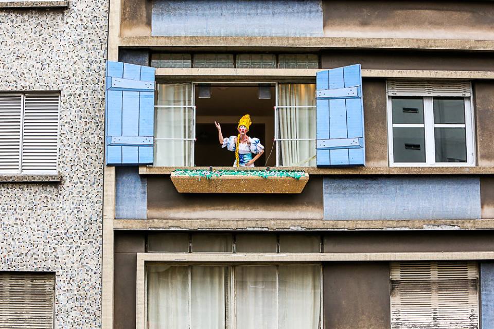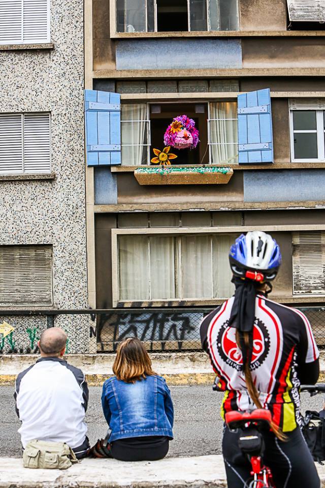 Espalhar o teatro pela cidade se apropriando de espaços urbanos é a intenção do Grupo Esparrama. Eles se apresentam nas janelas de um edifício na Rua Amaral Gurgel, no bairro de Santa Cecília – centro de São Paulo, e o público assiste de cima do Minhocão.