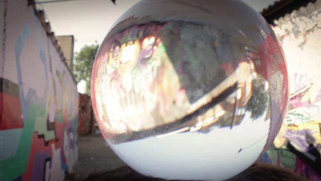 E o malabarismo de contato, que é a movimentação de bolas em contato com o corpo, aparece na manipulação de uma bola de cristal e outra de plástico.