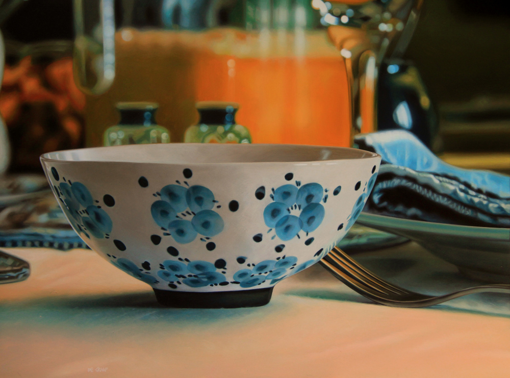 O artista canadense esbanja técnica em suas pinturas em acrílico. E ele procura desafios – que supera com enorme desenvoltura – como pintar vidros, cristais, superfícies com reflexo, líquidos, etc. Sobre seu trabalho, ele comenta: