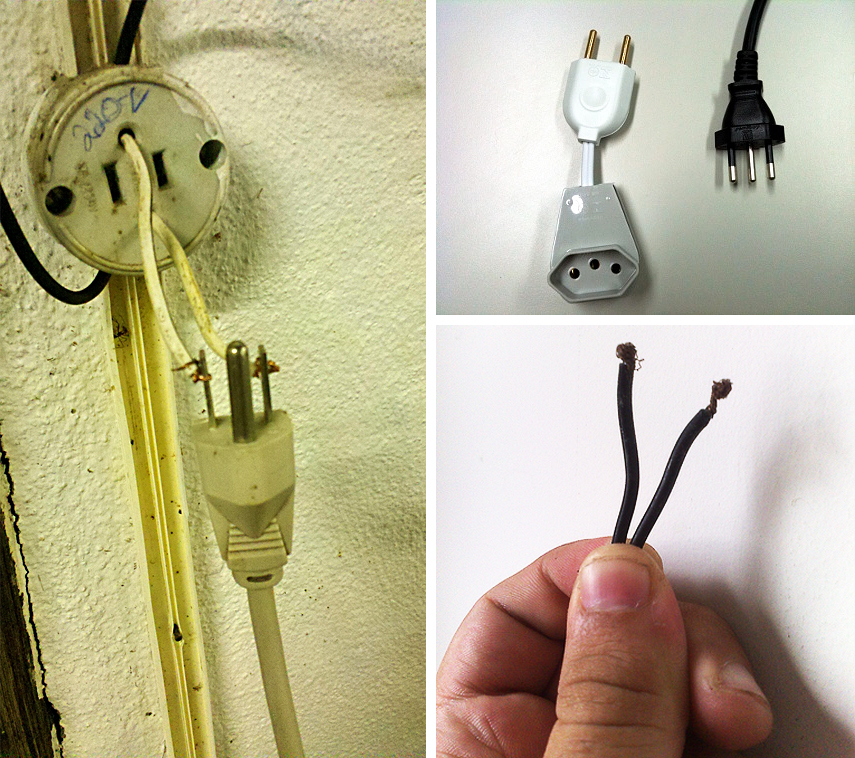 Quando o plug da tomada de um aparelho eletrônico começa a falhar costuma-se fazer de tudo para que ele continue funcionando, menos tomar as medias corretas que seria levar o objeto para o conserto. É então aplicada uma bela gambiarra! Ou cortamos o fio e enfiamos as pontas direto na tomada, sem plug nem nada, ou vamos dando aquela dobradinha no cabo até encontrarmos uma posição que elimine momentaneamente o mau contato. Recentemente temos encarado também uma nova situação: o novo padrão de tomadas. Agora me diz, quem é que vai trocar todas as tomadas da casa para atender às exigências dos novos produtos? O jeito é fazer um quebra-galho.