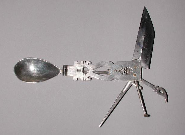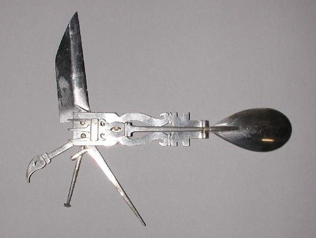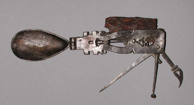 Aparentemente, o antigo canivete romano conta com 6 utilidades, entre elas a de faca, garfo e colher. Note que o formato do item não se diferencia tanto assim dos canivetes modernos. Suas dimensões são 15,5 por 8,8 centímetros.