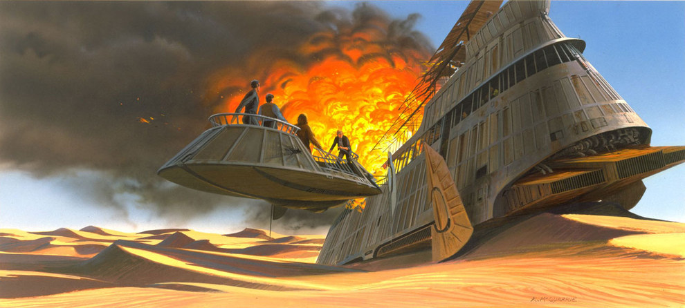 As ilustrações são do Ralph McQuarrie (1929 – 2012), que acreditou que os seus conceitos visuais nunca chegariam às telas porque achava que eram “complicados demais para a grande audiência”. Felizmente, milhões de pessoas conseguiram mostrar que ele estava errado.