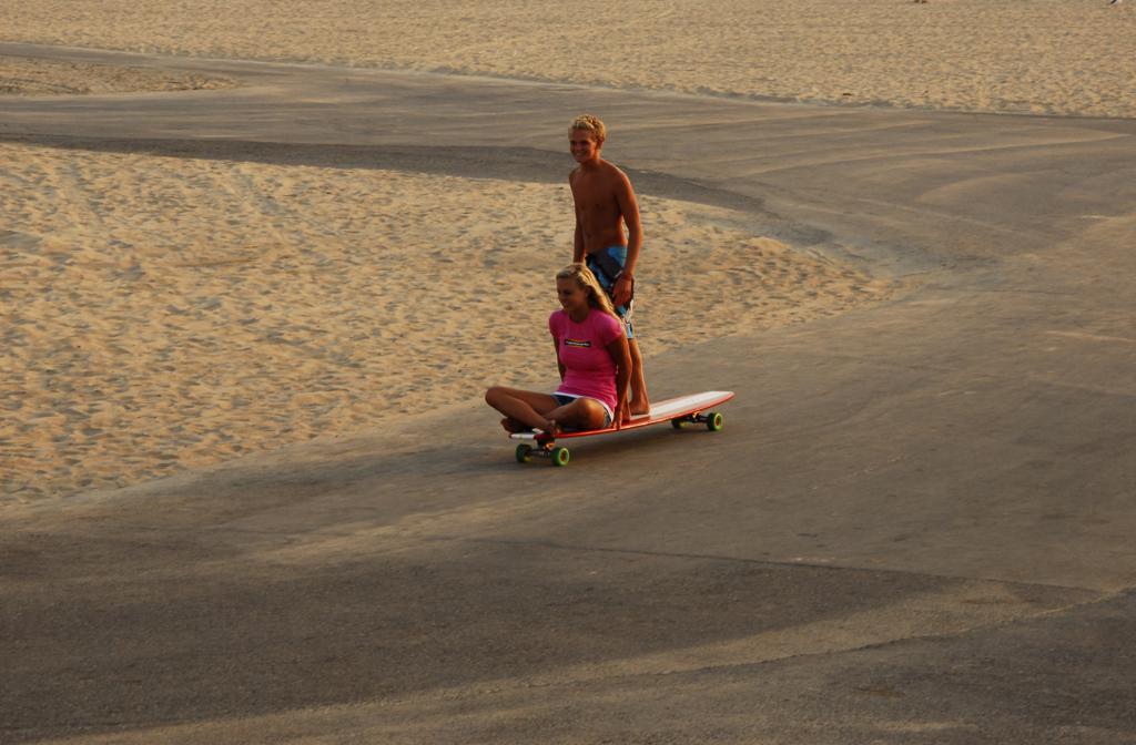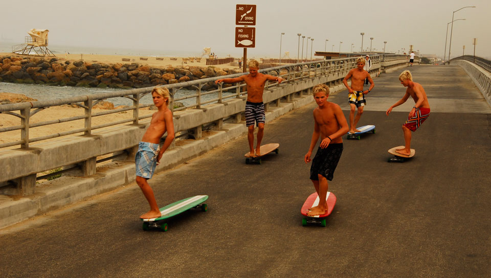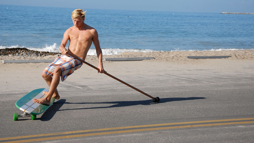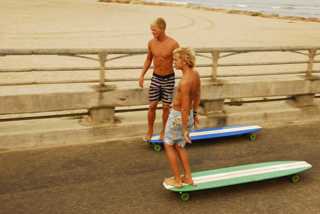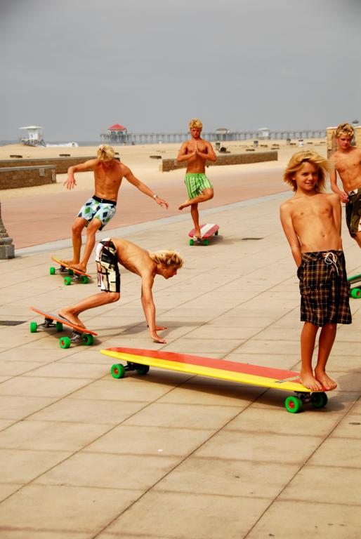 Ou vice-versa! Essa é a proposta do Hamboard, “modalidade” criada por uma família de surfistas (são esses garotos que aparecem nas fotos) também da Califórnia. Na verdade, trata-se de uma empresa que fabrica longboards – que já são conhecidos pelo shape mais extenso – ainda maiores. Estamos falando de skates com 182,88 cm de comprimento (lá nos primórdios eles mediam coisa de 40 cm).