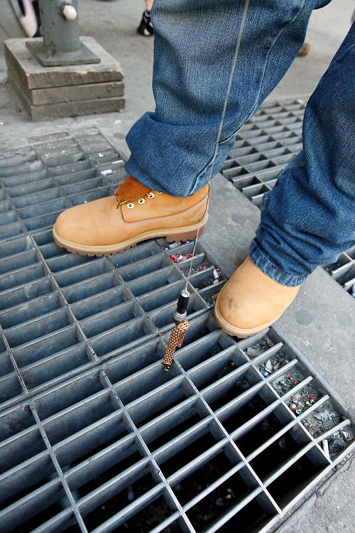 Aos 38 anos, Eliel está há 8 “pescando” joias, eletrônicos, dinheiro e outros objetos que pedestres deixam cair nas grades das calçadas. “Se você deixar cair, eu vou buscar – por isso tenha cuidado”, aconselha.