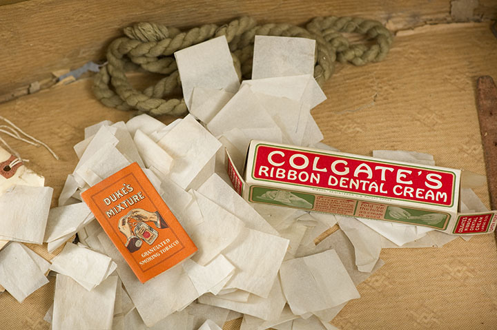 vemos que a simplicidade das coisas e dos objetos que eles guardavam eram o que satisfazia os momentos perturbadores de mentes inquietas que o mantinham vivos… de um certo modo a organização e o apego a eles era como um espelho mágico que refletia o mundo que eles enxergavam de lá… mto legal!! os objetos intactos apesar do tempo… mto bom.