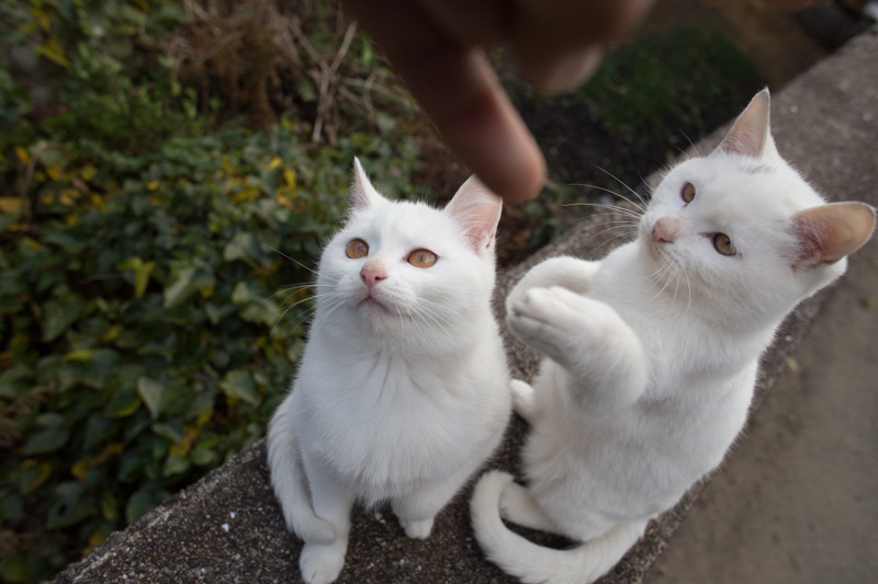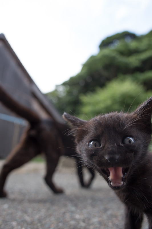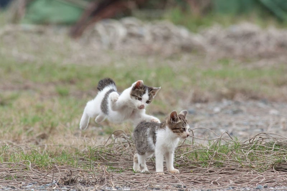 Os animais são alimentados por pescadores e moradores locais. Em algumas das fotografias, Fukuoka interage com os bichos revelando-se um amigo dos gatos e indicando que, mesmo crescendo soltos, eles não oferecem perigo.