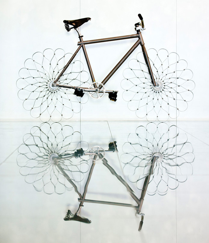 No projeto, as rodas tradicionais foram substituídas por um conjunto que se comporta como molas metálicas. O mais incrível é que é possível sim dar umas voltas na bicicleta criada por ele – com alguma dificuldade, é verdade! Veja no vídeo abaixo: