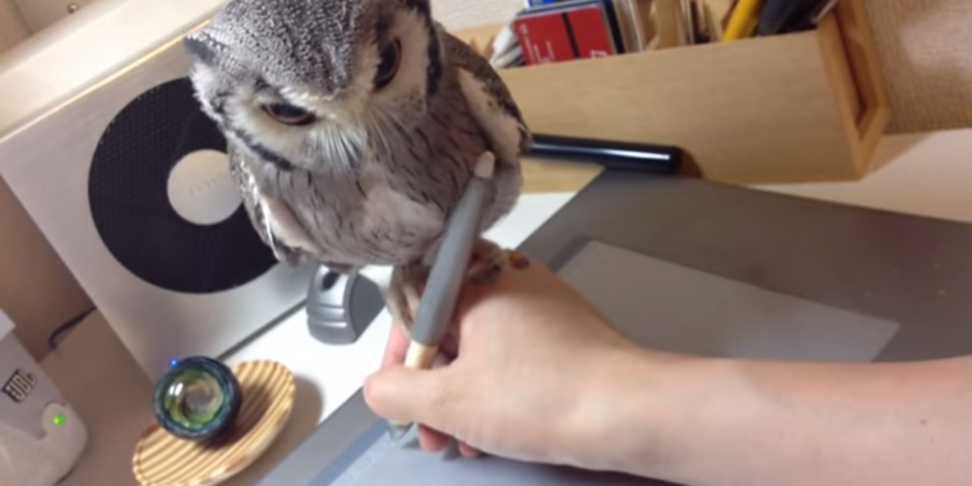 06. A coruja que empoleira na mão de seu dono mesmo quando ele está desenhando