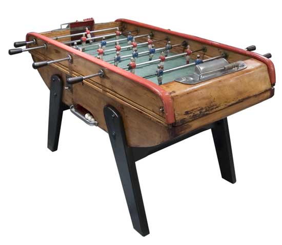 As primeiras mesas de pebolim surgiram na Europa no final da década de 1930. O francês Alexandre Finisterre é tido como o inventor do jogo, no entanto, os alemães creditam Broto Wachter como o verdadeiro pioneiro do futebol de mesa.