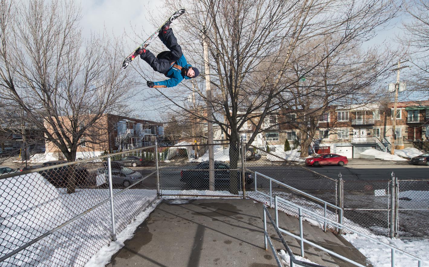 Esses canadenses aproveitaram uma das características do seus país — invernos rigorosos que trazem quantidades generosas de neve pra cidade — e reinventaram o snowboard. Afinal, por que subir uma montanha quando o corrimão tá logo ali, na esquina?