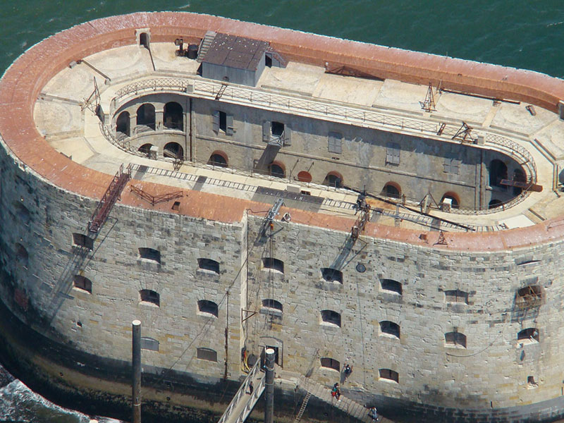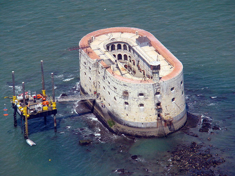 Localizado em La Rochelle, na França, o Fort Boyard foi concebido como uma ilha artificial para proteger a baia de Aix Island e Rochefort. Com 68 metros de altura (um prédio com cerca de 20 andares), a construção foi inaugurada em 1857. O formato oval do exterior é inspirado nas formas de um típico veículo do século XVII.