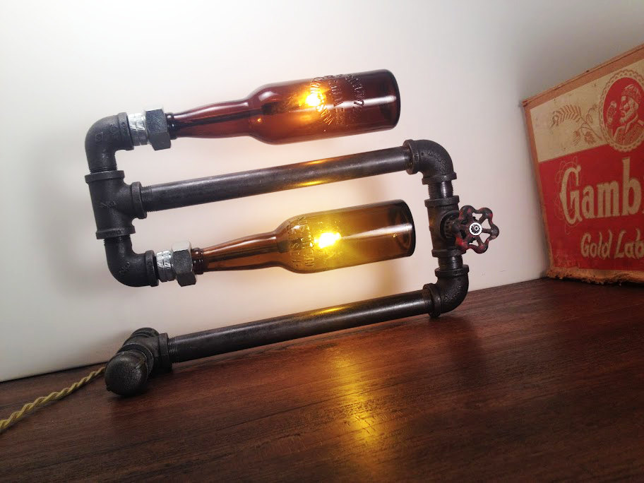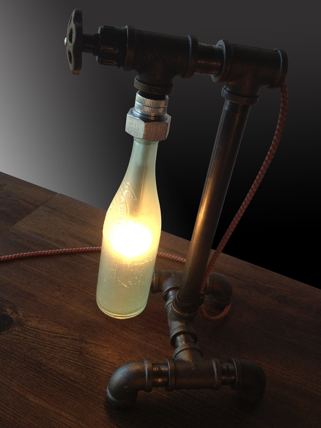 Talvez essa seja a única regra envolvida na criação dessas luminárias. São feitas primordialmente de canos (tubos), conexões e garrafas fazias. Tubos de metal são empregados na construção, mas nada impede que sejam substituídos pelo PVC. Qualquer que seja sua opção, tudo o que você precisa poderá ser encontrado praticamente de graça em ferros-velhos ou talvez nas ruas, em caçambas de entulho, basta ter olhar atento.