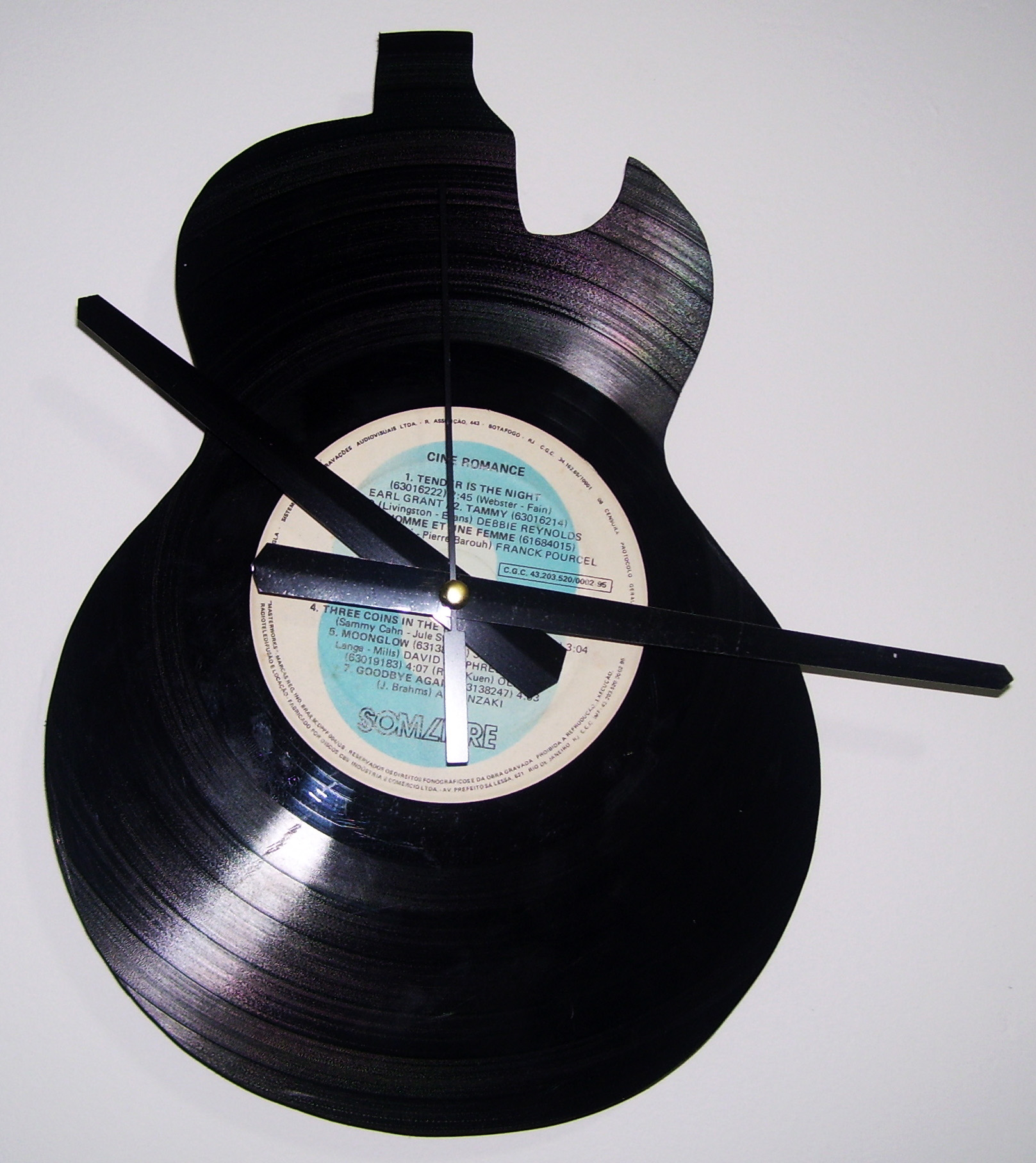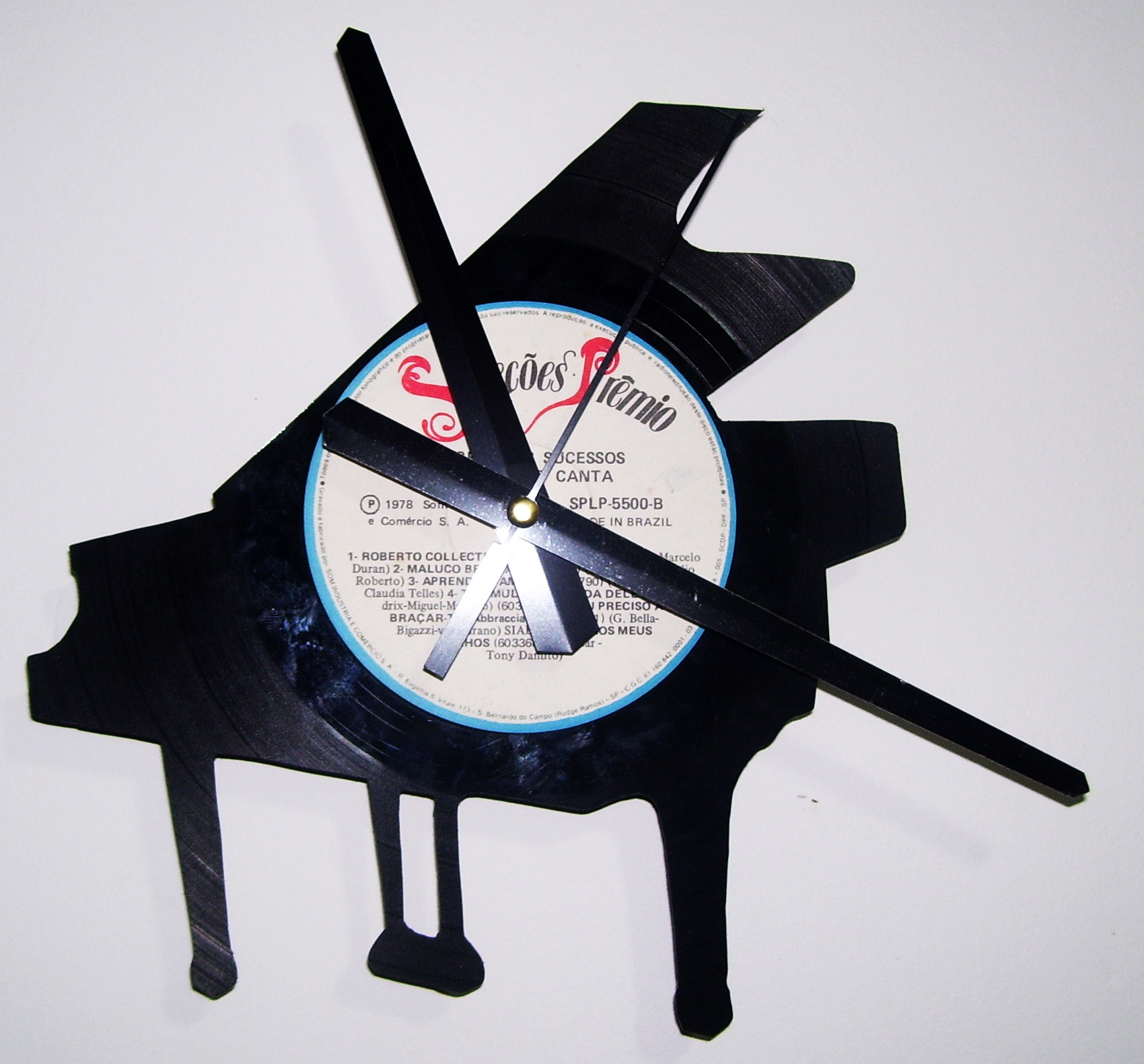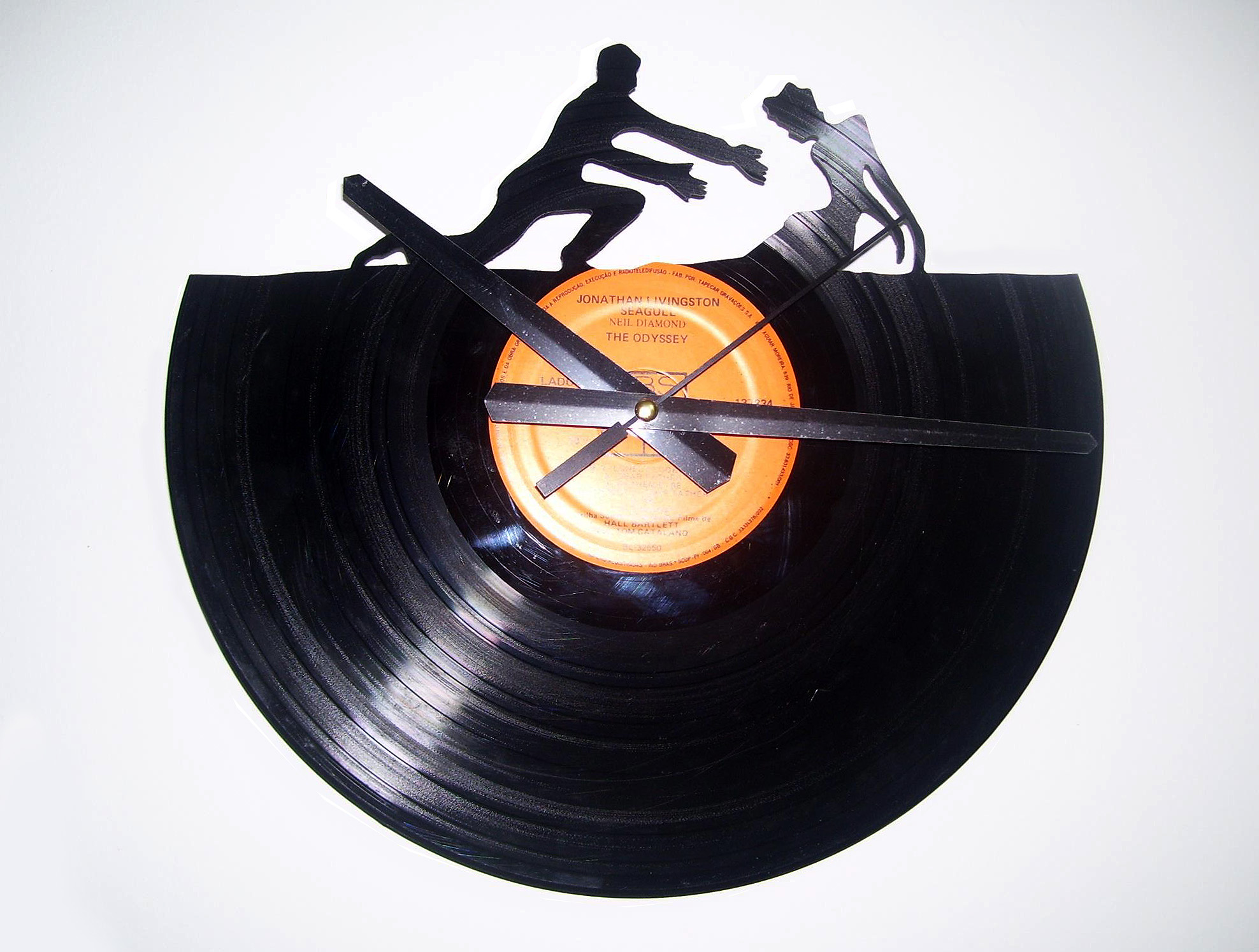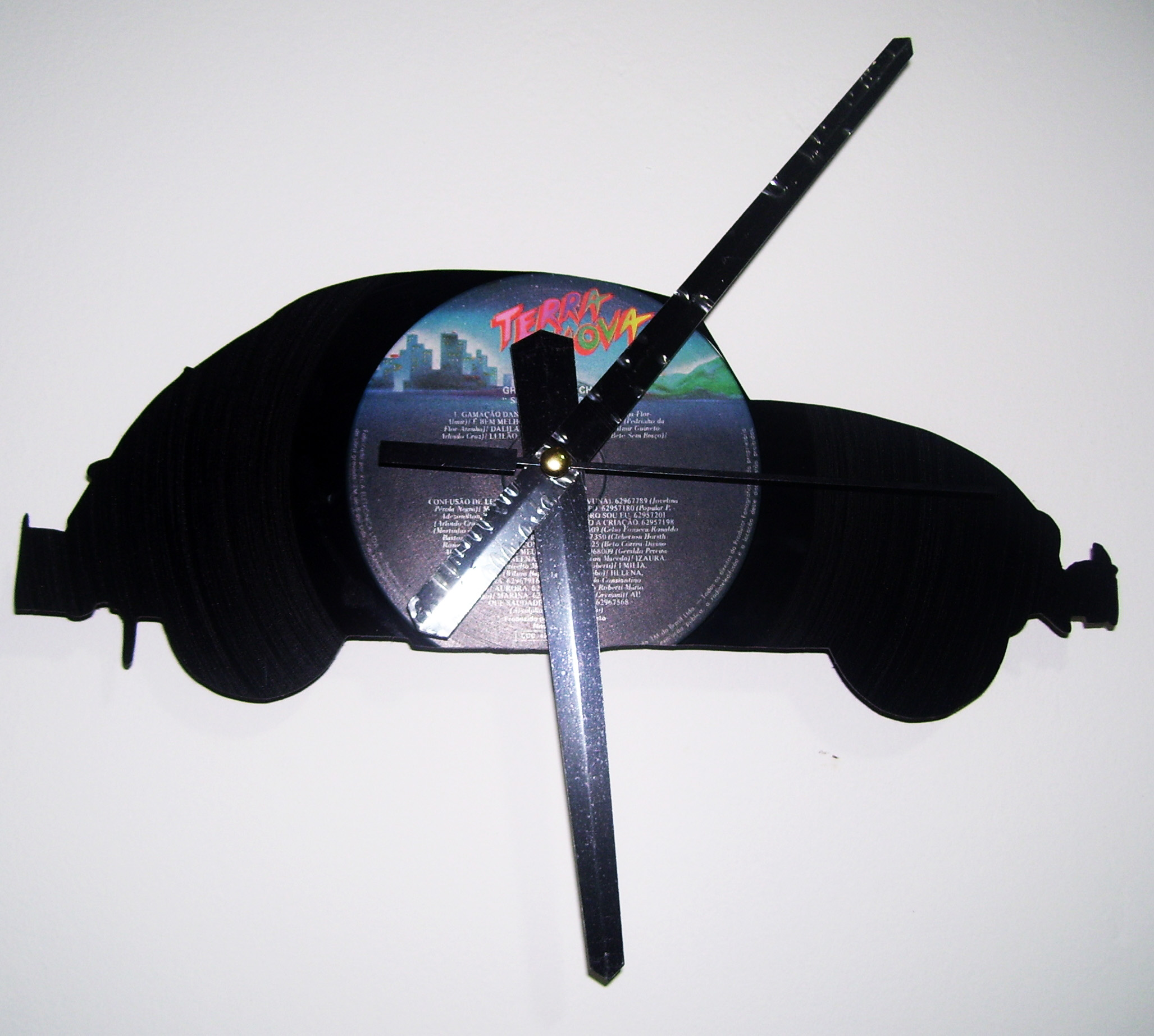 Dito isso, é hora de conhecer o trabalho da ReCriar Vinil, que transforma vinis velhos em relógios de parede bastante criativos. O trabalho da ReCriar vai além de apenas colocar os ponteiros no centro do “bolachão”, os discos são também recortados nas mais diversas formas.