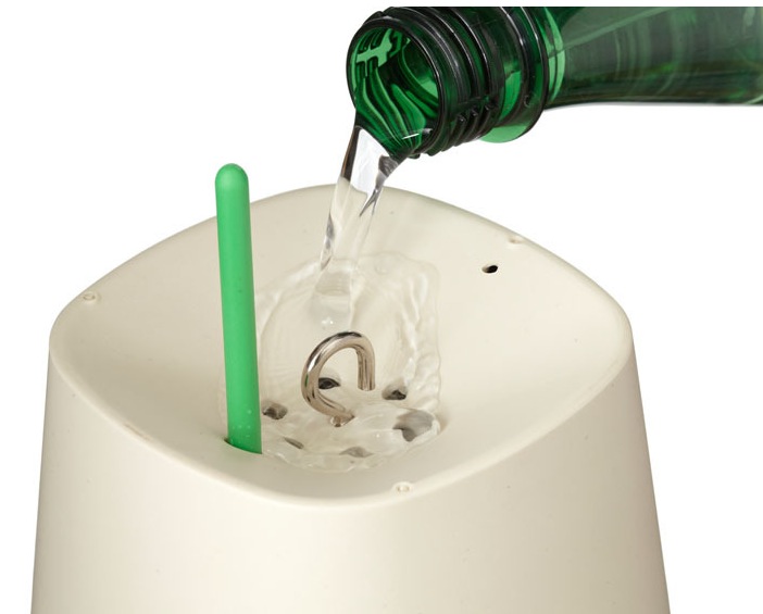 Para regar, basta adicionar água por cima do vaso. Há uma entrada especial que leva a água direto a um reservatório, a planta é umedecida gradualmente, conforme sua necessidade. Em geral, os vasos suspensos precisam ser regados menos vezes que os convencionais.