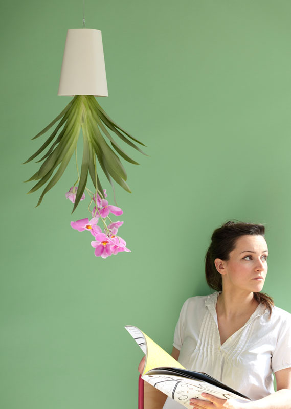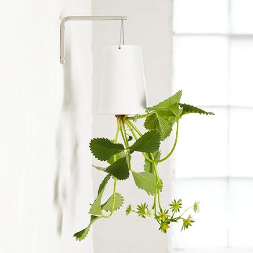O nome desse produto é Sky Planter, são vasos suspensos que se assemelham a luminárias, só que no lugar das lâmpadas, estão os mais diversos tipos de plantas, como palmeiras Kentia e Areca, o Antúrio, a Hera Inglesa , Bromélia, Geranio, Hoya Carnosa, Lírio da Paz e a Babosa.