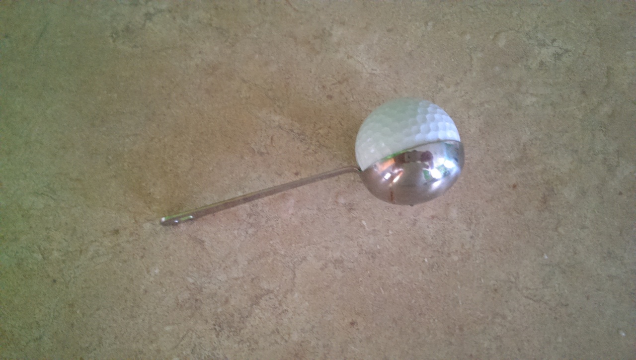— A bolinha de golfe foi feita para essa colher, não é possível!