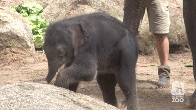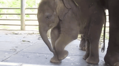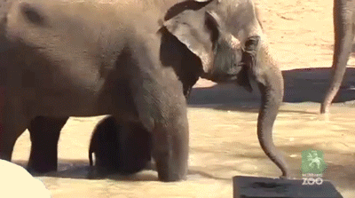 Aprender a usar a tromba pode ser um processo constrangedor: no começo ela não é bem um acessório tão anatômico. Mas com perseverança, os elefantes bebês aprendem. E a gente se diverte no meio do caminho. 😉