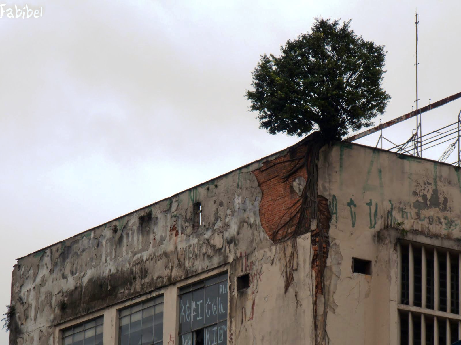 No topo de um prédio abandonado, na Avenida dos Estados, em São Paulo, podemos observar uma árvore. Veja o modo como ela se enraizou na parede de tijolos. No entanto, toda construção foi demolida recentemente, uma pena! Ainda bem que este blog reuniu algumas fotos e contou a história da pequena árvore.
