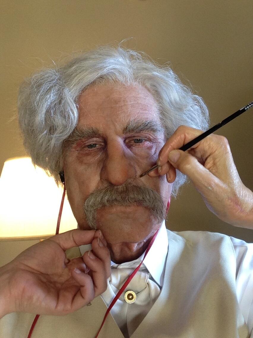 É impressionante o trabalho de maquiagem que transforma o ator Val Kilmer em uma pessoa totalmente diferente. No caso, ele assume as feições do escritor Mark Twain para o filme “Mark Twain and Mary Baker Eddy”, do qual também é diretor.