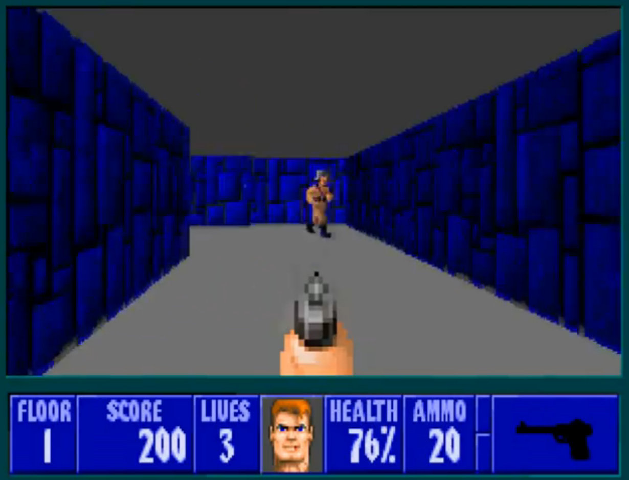 Se você bateu o olho e já reconheceu o jogo acima, a idade chegou – é um game de 1992! Agora, se você é mais novo, olha só os gráficos do jogo mais evoluído da época – pioneiro do gênero tiro em primeira pessoa.