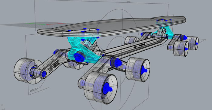 O shape é feito em madeira do tipo Bordo (uma madeira super resistente e leve, que muitas vezes é usada em instrumentos musicais) ou de fibra de vidro, os trucks em alumínio e o chassi em termoplástico (o mesmo material daquele cano PVC), que dão além de uma resistência muito boa, leveza pra você ficar remando por horas sem esforço excessivo! Mais informações no site do projeto.