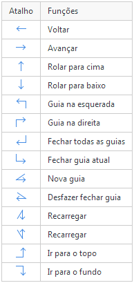 Para realizar tarefas comuns como abrir uma nova guia, voltar para a página anterior, trocar de guia ou recarregar a página, entre outras, basta clicar com o botão direito do mouse e fazer o desenho correspondente. Veja a lista de atalhos de movimentos na tabela abaixo: