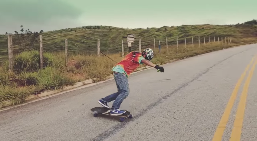 Com apenas 17 anos, Gustavo, que anda de skate há 5, especializou-se em downhill, que significa, resumidamente, encarar descidas – ele também pratica um pouco de street.